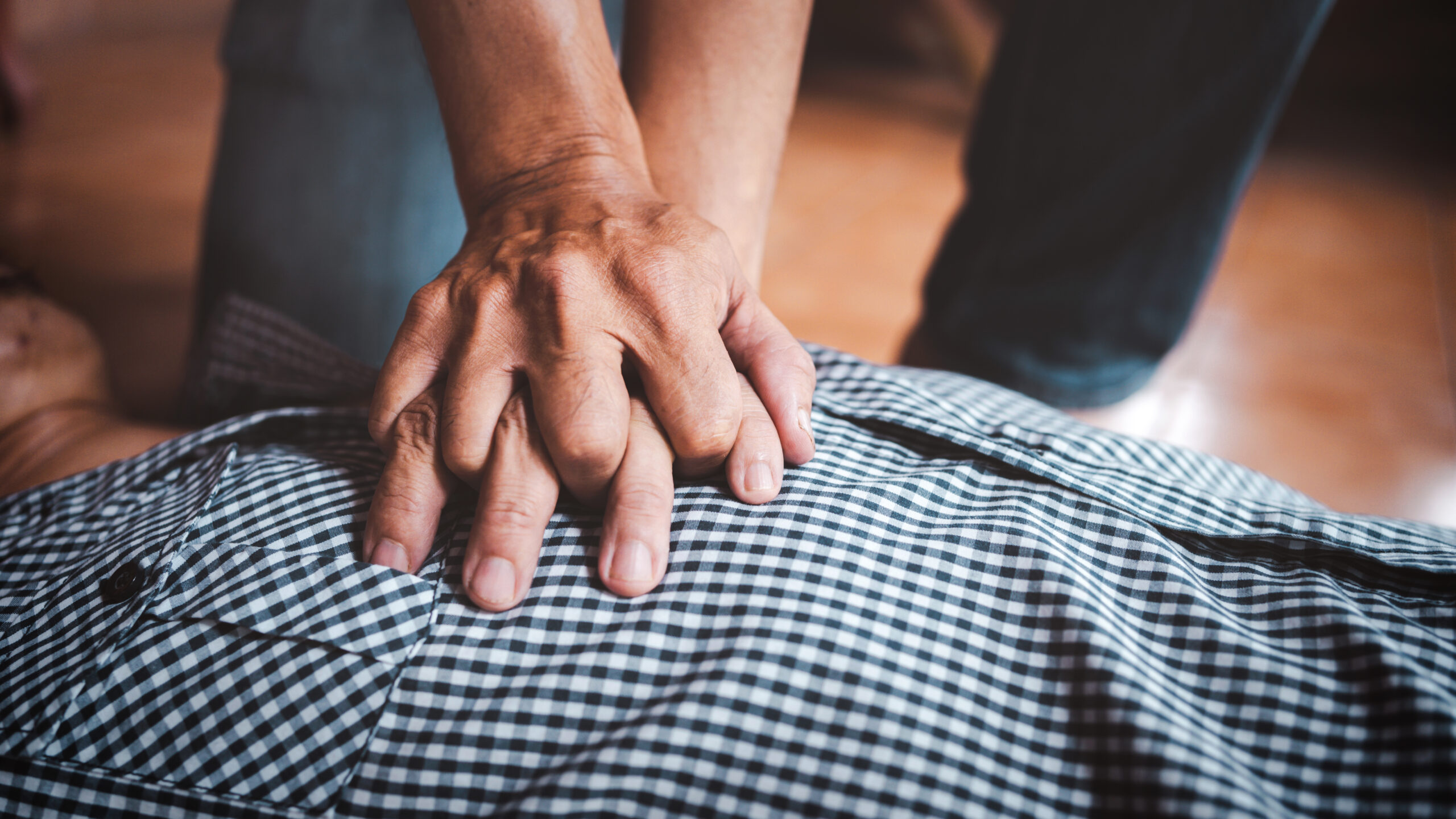 Doing CPR first aid to man with heart attack part of the resusci