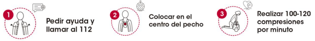 Recuerda que estos pasos forman parte de la conocida CADENA DE SUPERVIVENCIA, un conjunto de pautas esenciales a seguir en caso de encontrarse con una persona en parada cardíaca.